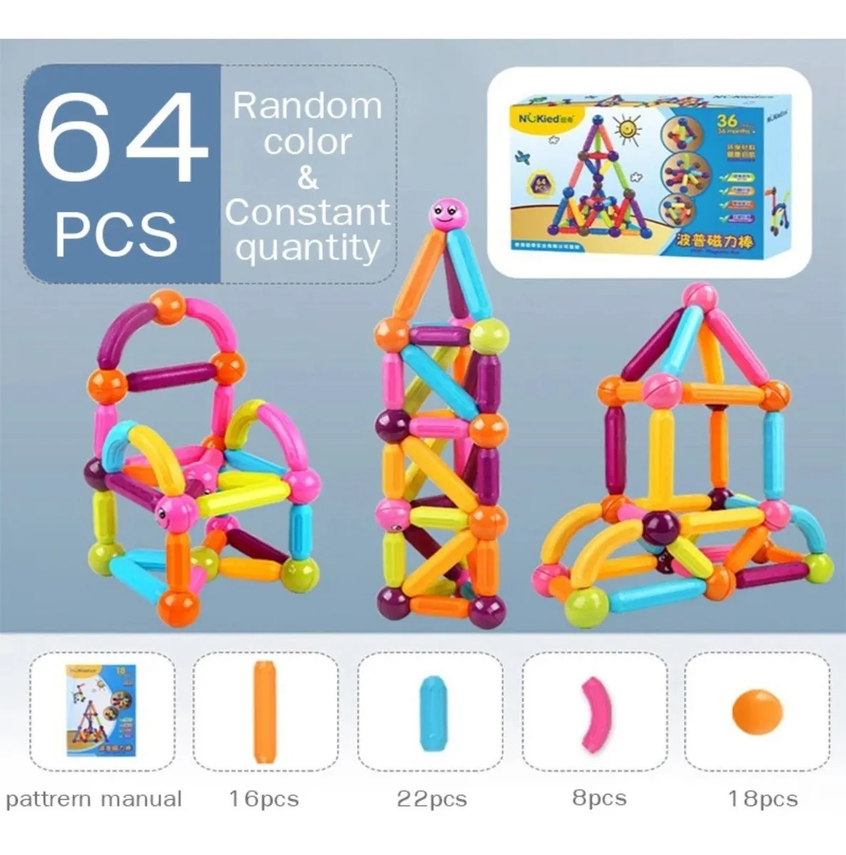 Juego Construcción Bloques Magnéticos 64 Piezas Gigantes