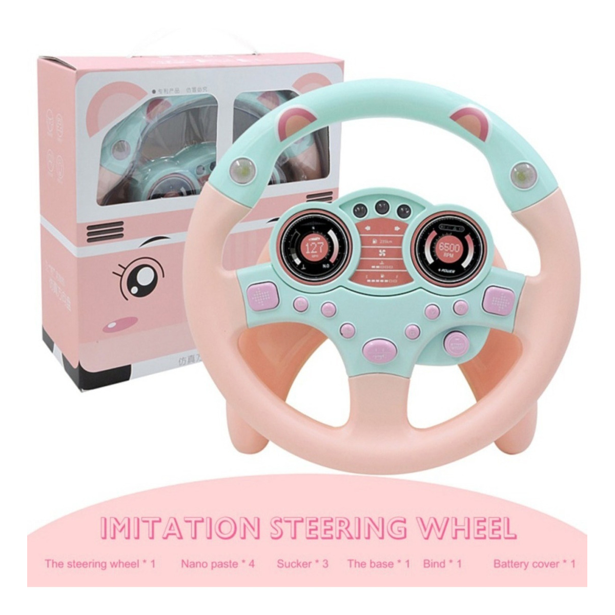 El volante gira 360º, e incluye botones con sonidos y luces, lo que lo hace aún más emocionante y atractivo para los pequeños. Además, su base de apoyo es desmontable, permitiendo usar solo el volante según la preferencia del niño.